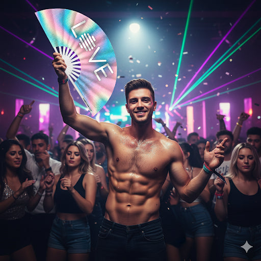 The One Love Fan is more than just an accessory; it's a statement celebrating the power of togetherness and pride. Its bold, vibrant design lights up under blacklight, making it perfect for every event where you want your joy and love to glow brightest.