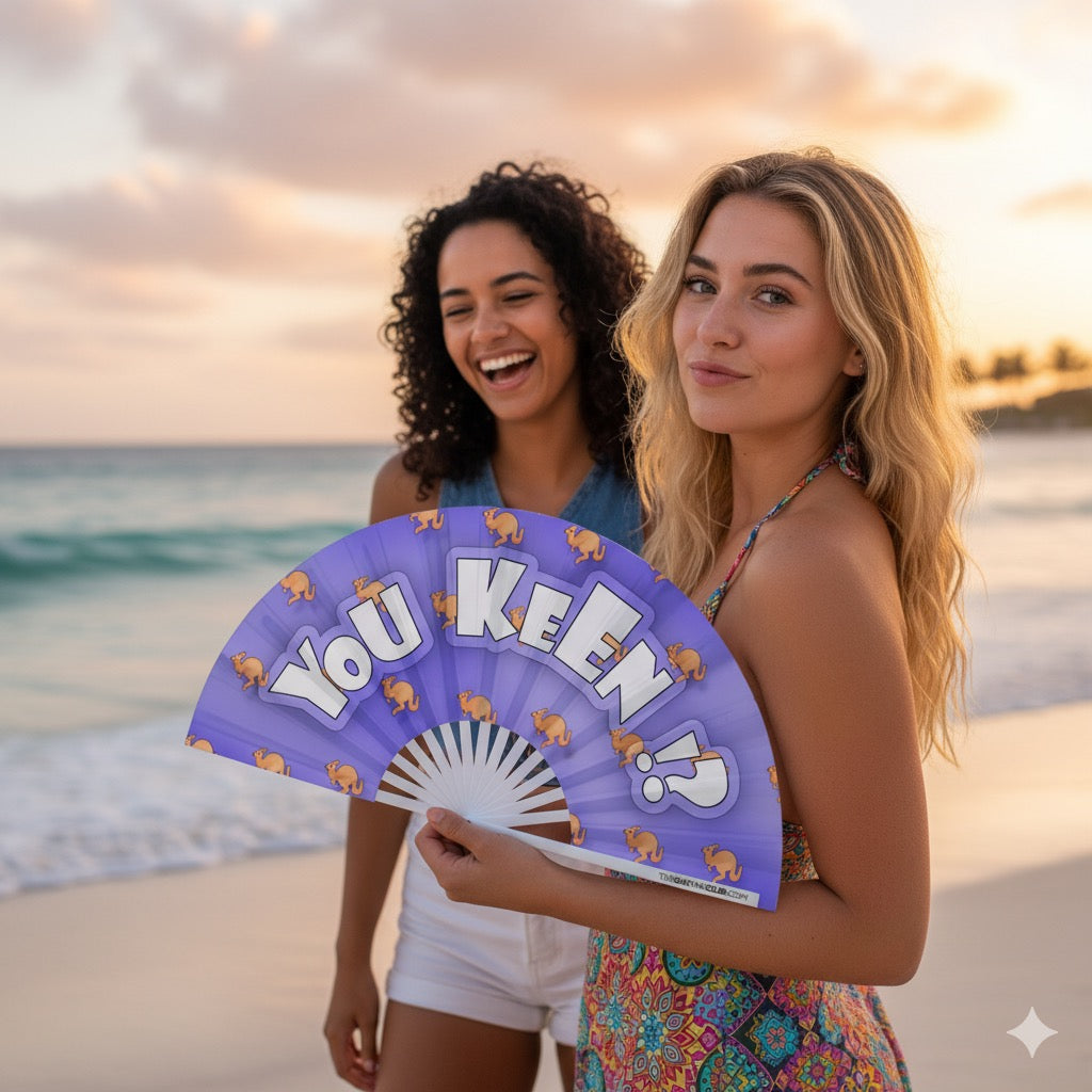 You Keen!? Fan - funny slang and kangaroos hand fan - The Gay Fan Club®