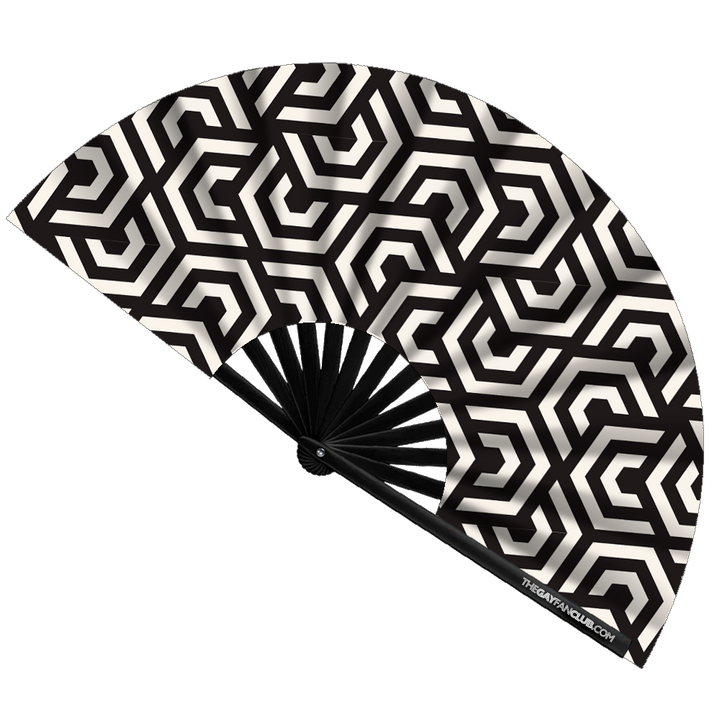 "Dimension" Geometric Optical Illusion Oversized Clack Fan (Black and White)