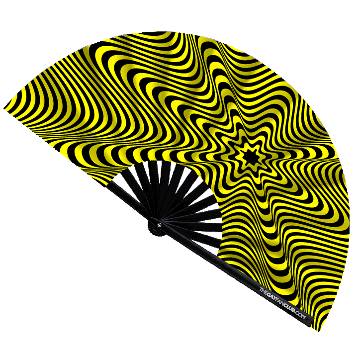 The Stranger Danger Fan is your high-visibility, UV-reactive companion for nights when you need to quickly evacuate the room—whether it's at a drag brunch, a shady club moment, or a packed rave. This oversized fan features a bold, cautionary yellow and black print that ensures you stand out.